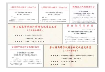 人文与社会科学研究院整合雄厚师资科研力量,围绕人文社会科学基础理论前沿问题展开研究,积极探索人文社会学科发展规律与成果转化机制,注重人文学科与自然学科的跨学科交叉融合,取得了丰硕的科研成果。自 2012 年以来,承担科研项目 783 项,科研到款7983 万元。其中,国家级重大攻关项目 4 项、国家社会科学基金十九大专项 1 项、国家社会科学基金重点项目 8 项、国家社会科学基金面上项目 76 项、国家艺术基金 1 项、国家自然科学基金 11 项、教育部人文社会科学研究项目 31 项、陕西省哲学社会科学基金 76项 。 刊 载 于 CSSCI 以 上 学 术 期 刊 的 论 文 1232 篇 , 其 中SSCI、SCI、A&HCI 和权威期刊 793 篇,CSSCI 期刊论文 968 篇;出版学术专著、教材 243 部。