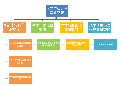 人文与社会科学研究院依托快速发展的人文社会科学学院,经世致用,人文化成,遵照“面向世界科技前沿、面向经济主战场、面向国家重大需求”的建设目标,以实证社会科学研究所、哲学与文化研究所、文学与影视传播研究所、艺术创意与文化产业研究所等四个研究所为平台,研究解决社会发展中的重要社会、思想、文学、文化、心理和艺术问题,探索学术前沿,践行学科融合,推进智库建设及成果转化,为创造人民美好生活提供思想、精神和文化支撑。